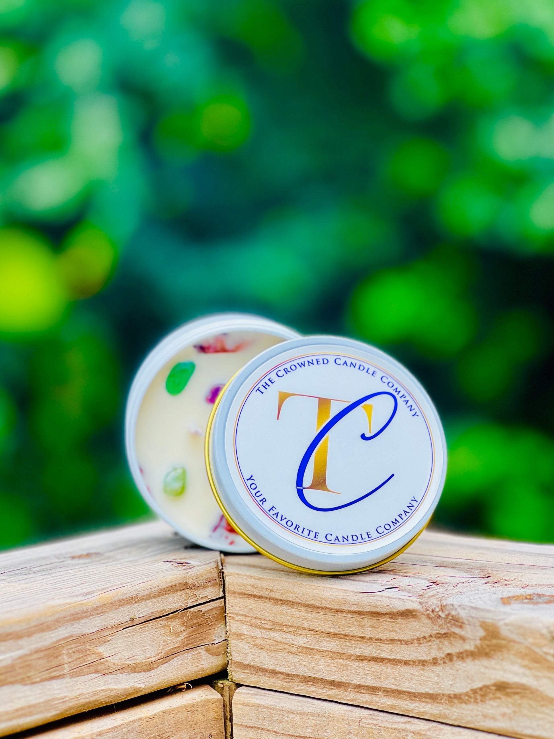 Packaged in a sleek gold or white metal tin, this candle isn’t just about ambiance — it’s about claiming your moment of calm, confidence, and Crowned energy.